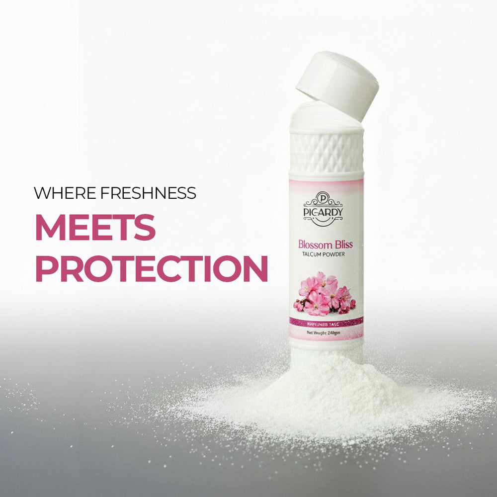 Feel the freshness! This talcum powder is designed to absorb moisture and control perspiration, keeping your skin feeling soft, smooth, and dry all day long. This premium formula effectively manages sweat while providing a lasting sense of comfort and freshness. Suitable for all skin types, it ensures a clean and refined feel. Enjoy the perfect balance of moisture control and skin softness with a delightful floral fragrance.