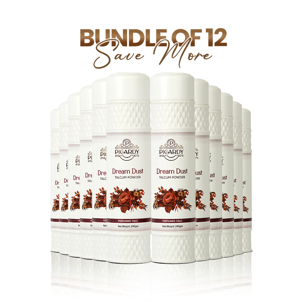 Stay fresh and dry all day with Dream Dust Talcum Powder – now in a pack of 12. This ultra-fine formula absorbs moisture and controls perspiration, leaving your skin soft, smooth, and comfortable. Suitable for all skin types, it offers long-lasting freshness with a clean, refreshing fragrance.