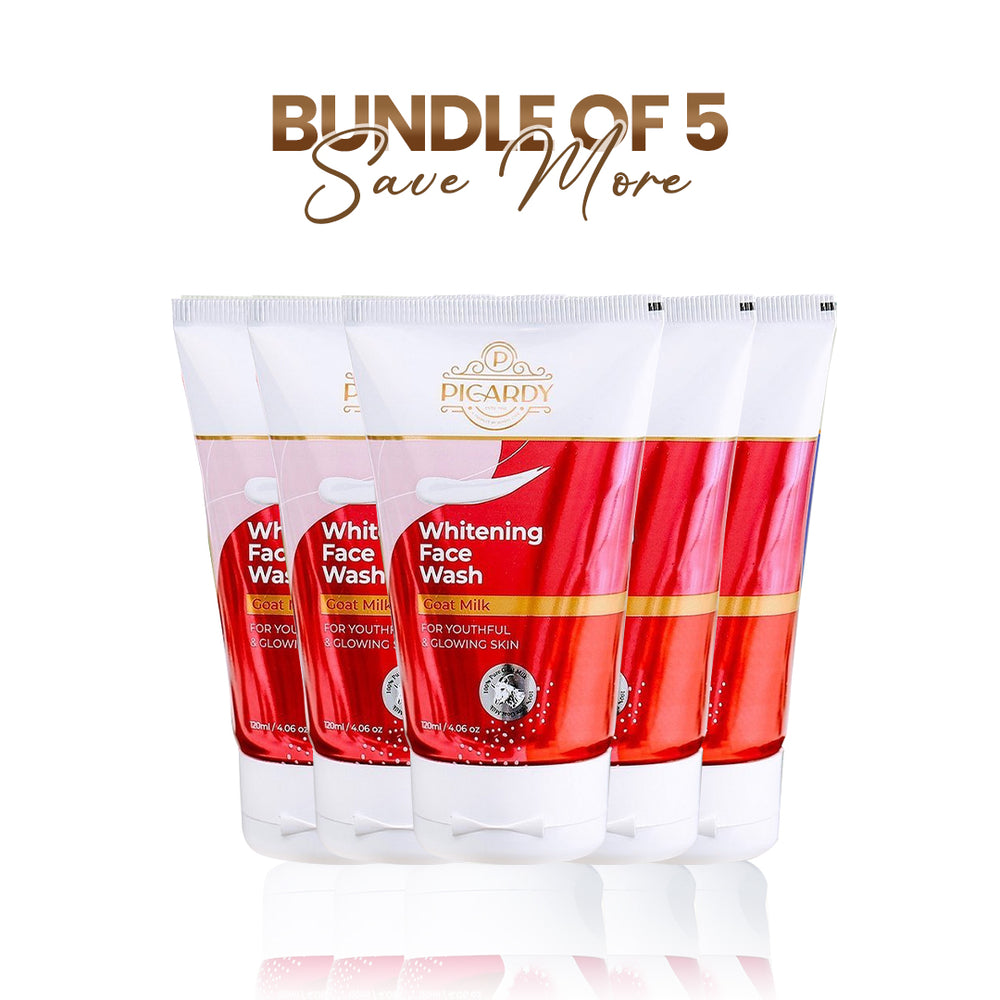 Get twice the radiance with this Pack of 5 Picardy Goat Milk Whitening Face Wash. Specially formulated to brighten and even out skin tone, this gentle cleanser removes dirt and impurities without drying out your skin. Enriched with whitening and hydrating ingredients, it leaves your skin soft, fresh, and naturally glowing after every wash.