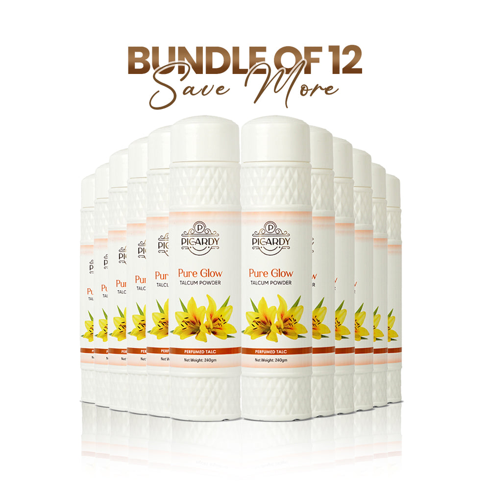 Feel fresh and confident all day with Pure Glow Talcum Powder – now available in a pack of 12. This premium formula absorbs moisture and controls perspiration, keeping your skin soft, smooth, and dry. Suitable for all skin types, it offers long-lasting comfort and freshness with a delightful, gentle fragrance.