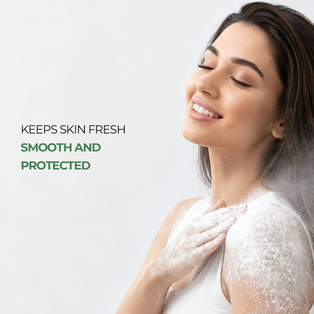 Feel the freshness! This talcum powder is designed to absorb moisture and control perspiration, keeping your skin soft, smooth, and dry all day long. This premium formula effectively manages sweat while providing a lasting sense of comfort and freshness. Suitable for all skin types, it ensures a clean and refined feel. Enjoy the perfect balance of moisture control and skin softness with a delightful floral fragrance.