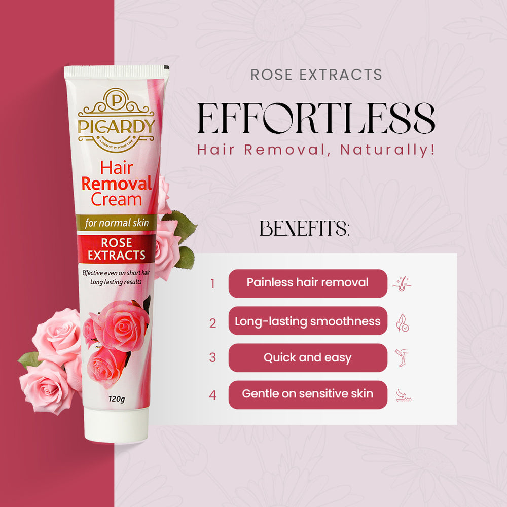 Includes: 1x Picardy Silken Touch Rose Extract Hair Removal Cream (120g)
